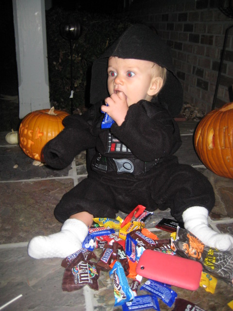 said in the appropriately breathy and tiny voice of Nicholas. Actually, given the time since those words were first uttered, this guy looks more like Luke's grandson. Here we have the official shot of NQD on his first Halloween….
