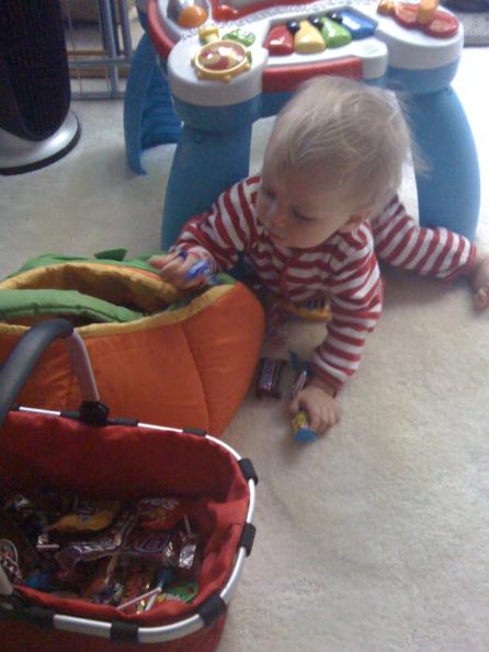 And, yes, I agree it is way too much candy for an 8 month old. Then again, he was called everything from "Oh, look at the, what is he, one?" to "Oh, what a sweet little girl!" Yes, the rain made his hair fuzzy, but really…