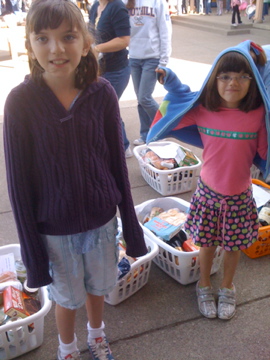 The girls had fun, but I have to say I was a bit surprised. Not nearly the turnout we expected, and we had way too much candy left over. All in all it was an interesting re-introduction to the art of candy hunting and gathering, and we are already brewing next year's Halloween happenings!